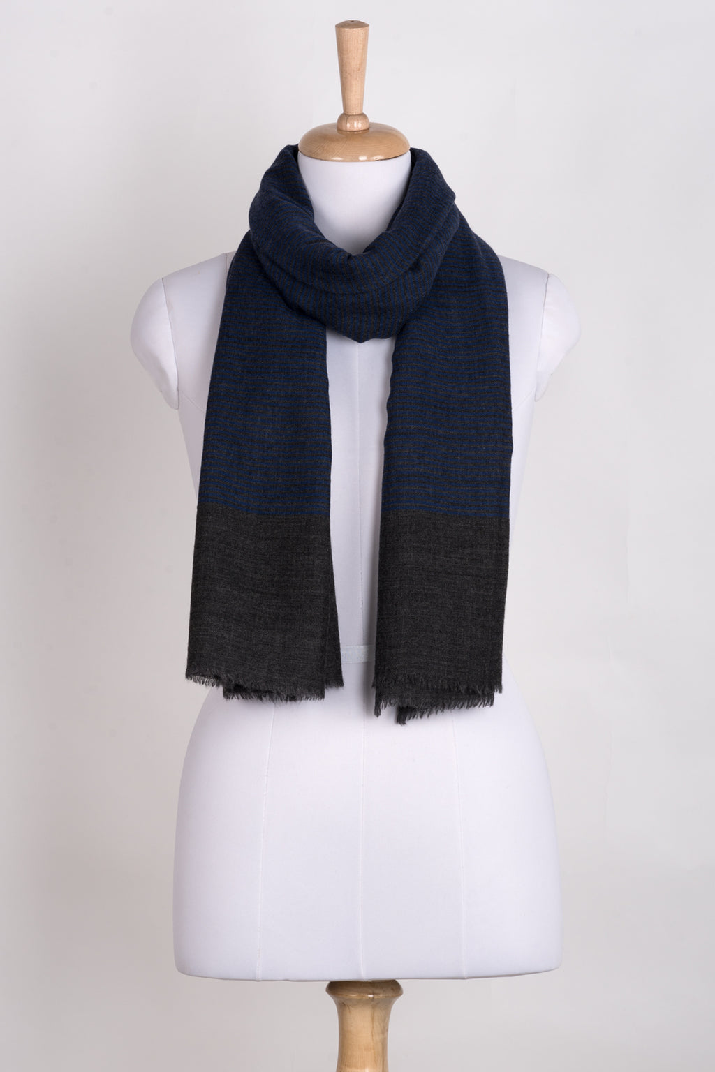 Pinstripes with Border Merino Wool Scarf - Blue Grey